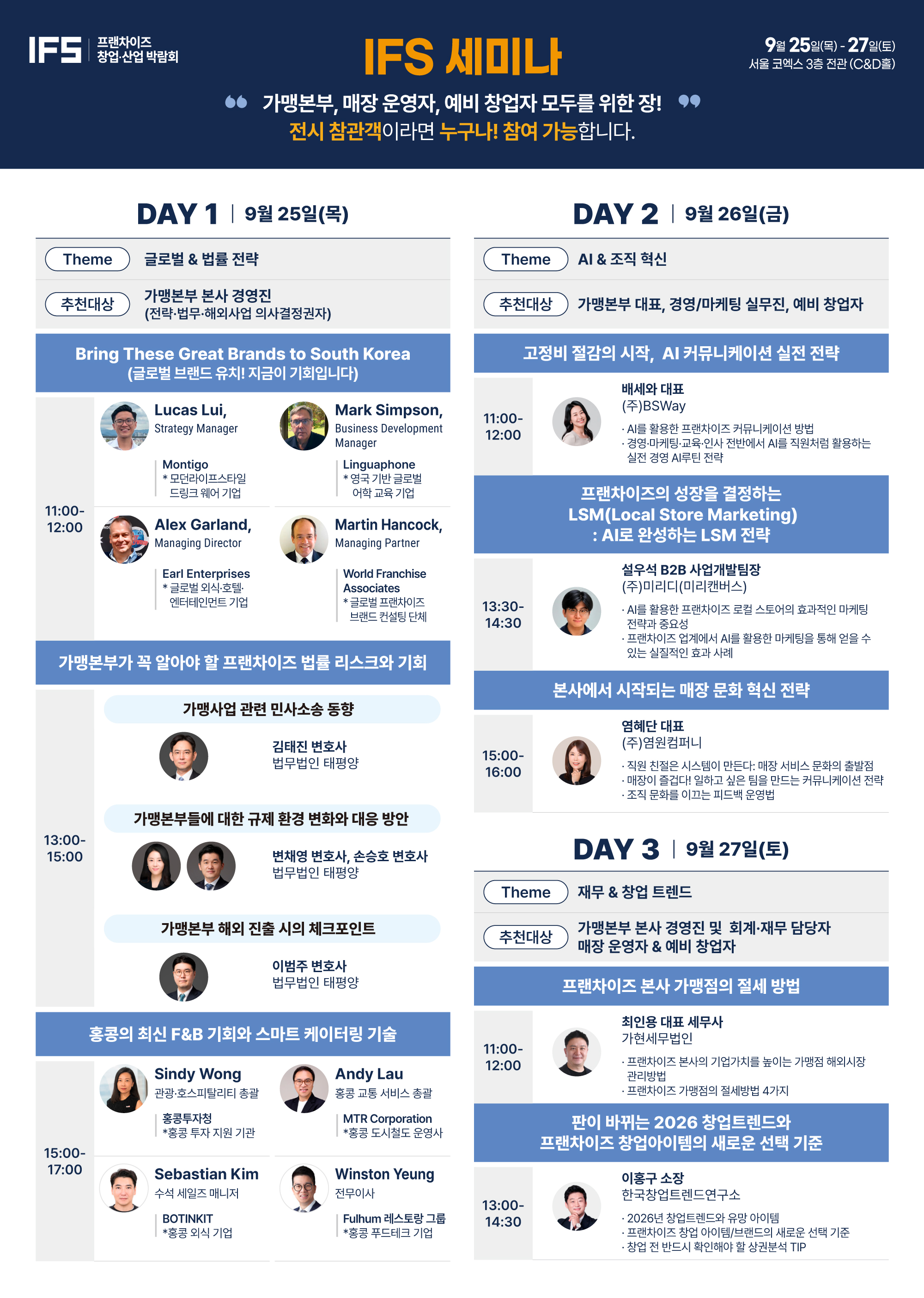 프랜차이즈 본사, 예비 창업자, 매장 운영자를 위한 IFS 세미나가 새로운 인사이트를 전해드립니다!